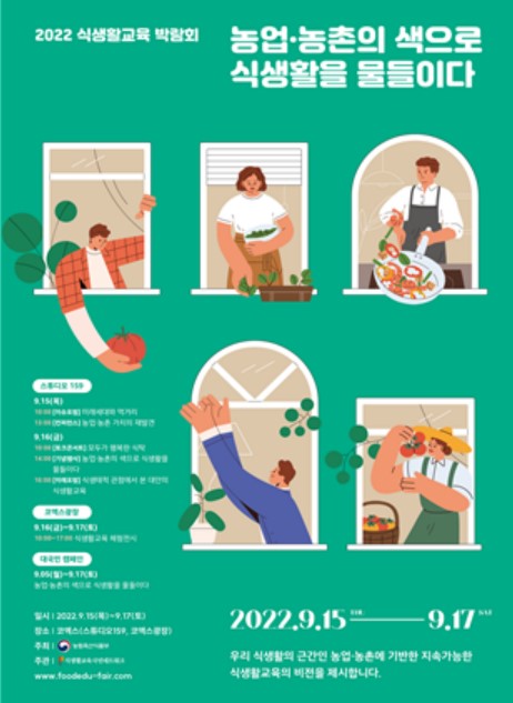 [오행생식 김미자 기자] 농림축산식품부는 식생활교육 주간을 맞이하여 15일부터 17일까지 3일간 ‘2022 식생활교육 박람회(이하 박람회)’를 개최한다고 밝혔다.
