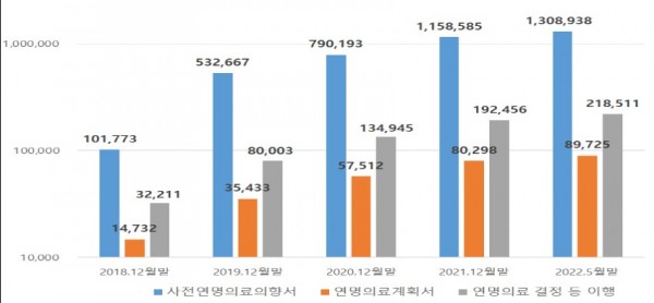 참고로 현재 65세 이상 노인의 사전연명의료의향서 등록 건수는 전체 작성자의 77.9%로, 노인복지관은 어르신 대상 전문상담과 연계하여 연명의료에 대한 자기결정권을 행사할 수 있는 접근성을 높이며 제도 사각지대를 해소할 것으로 기대된다.