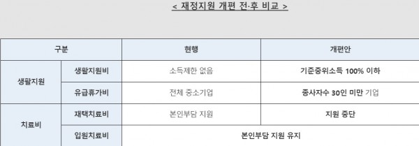 앞으로는 종사자 수 30인 미만의 중소기업 사업장에 대해서만 지원하게 된다. 참고로 전체 중소기업 종사자의 75.3%가 30인 미만 사업장에 근무하고 있다.