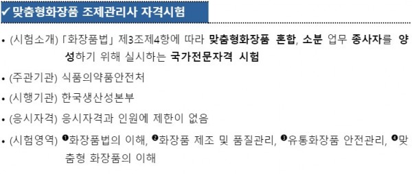 맞춤형화장품 조제관리사 자격시험 9월3일 실시